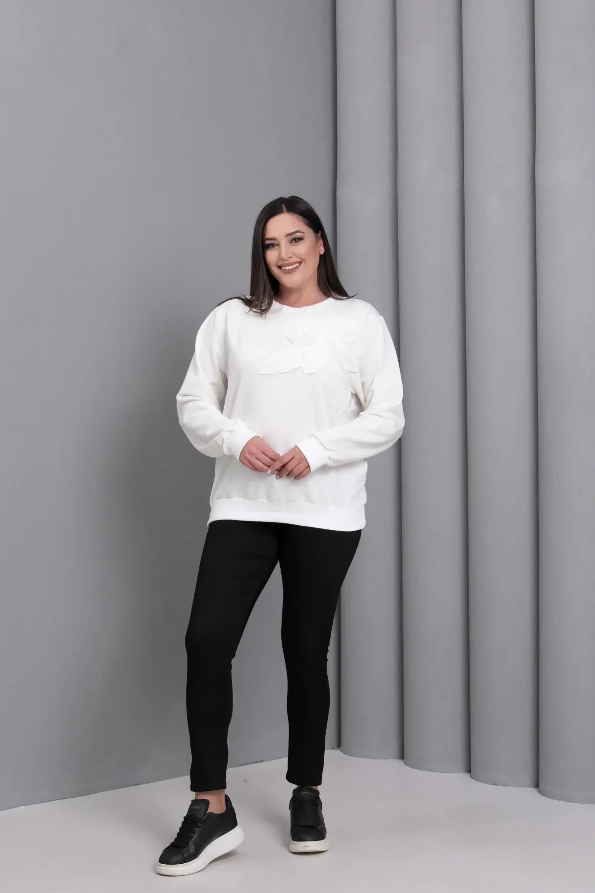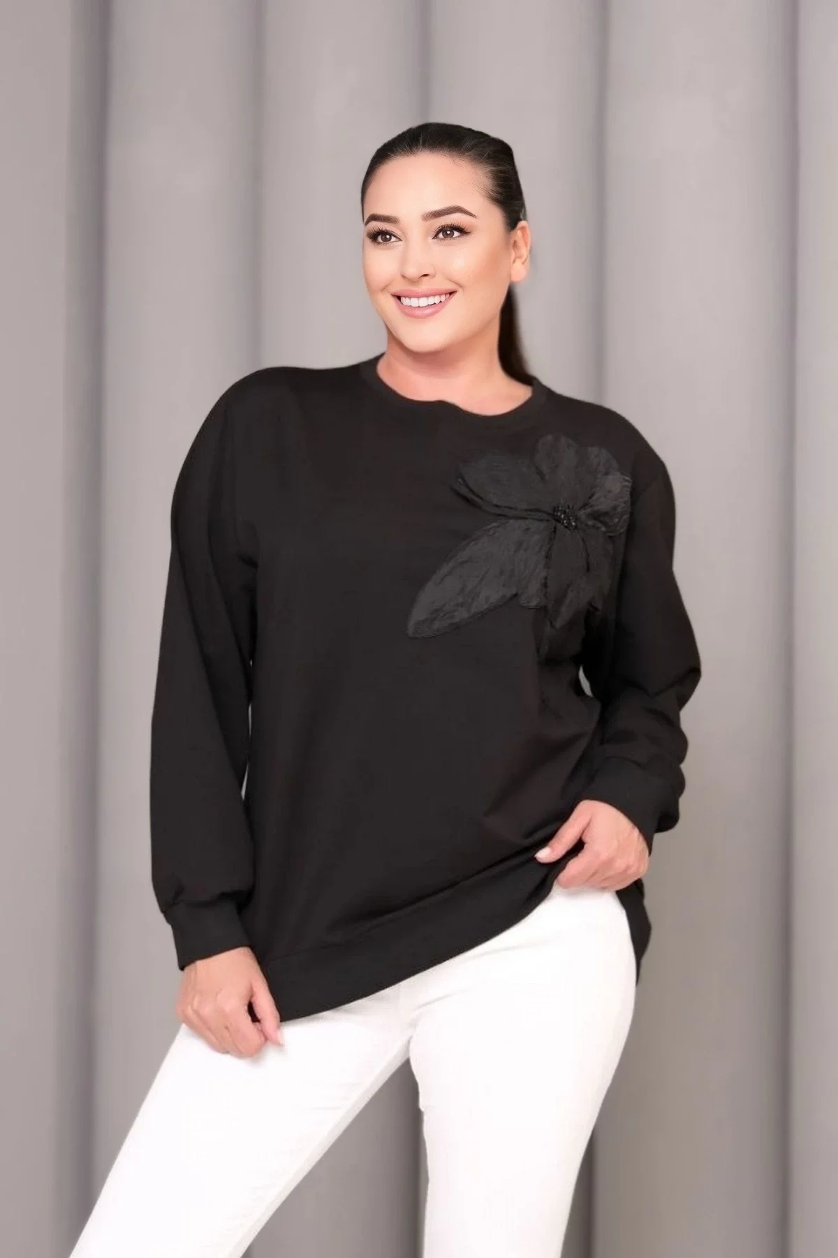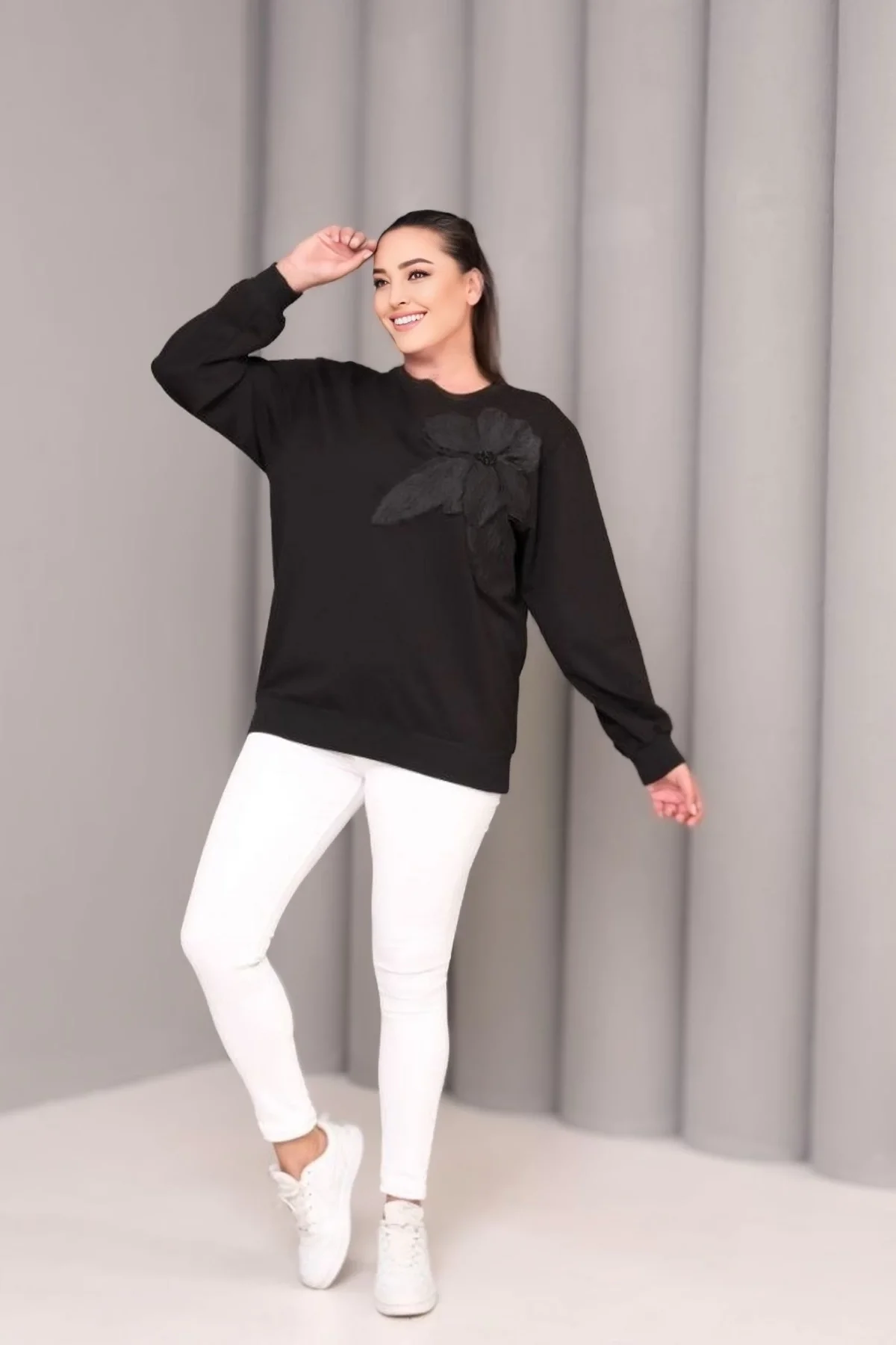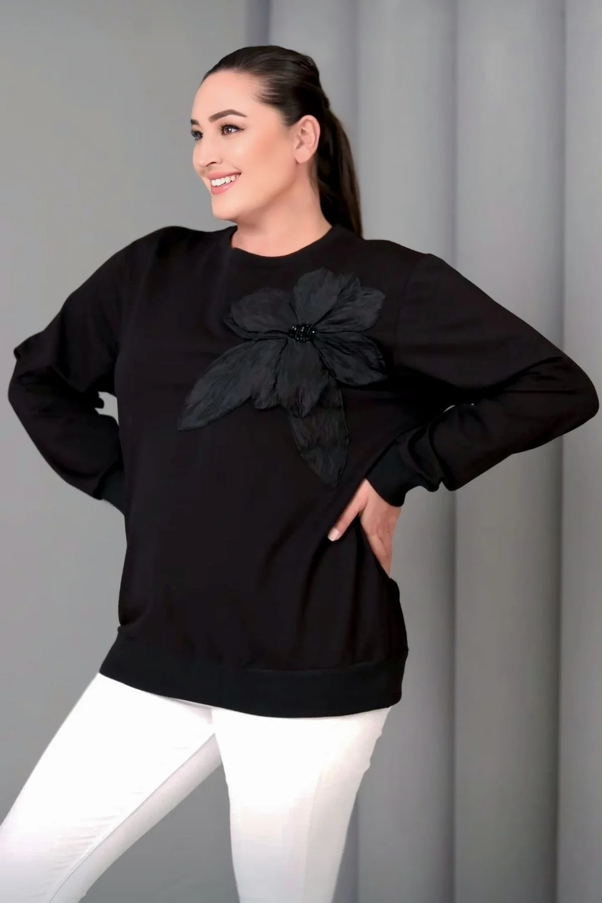 Çiçek Aplikeli Sweatshirt