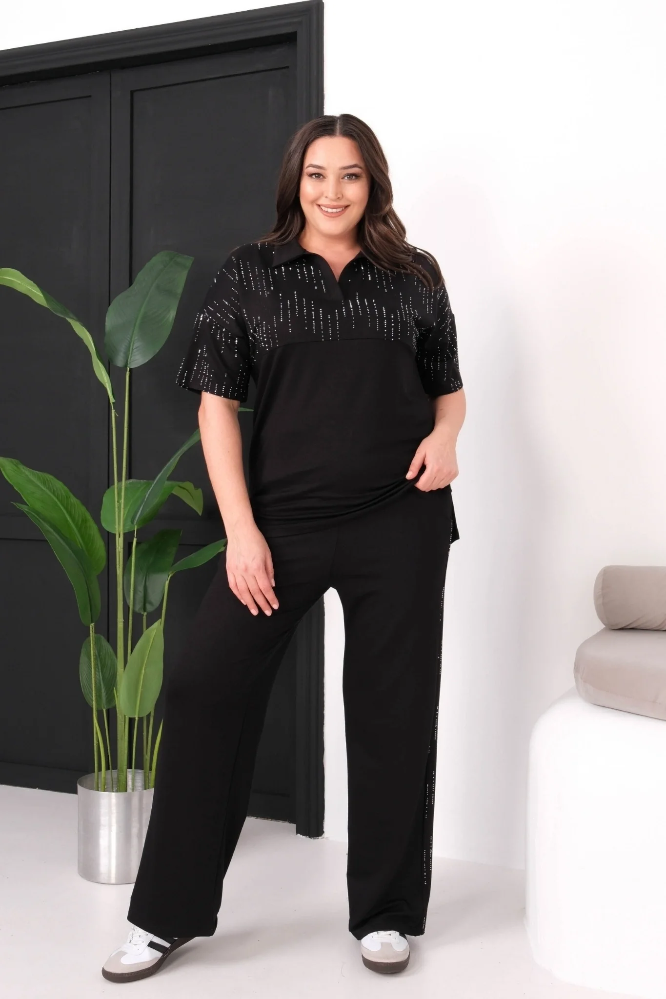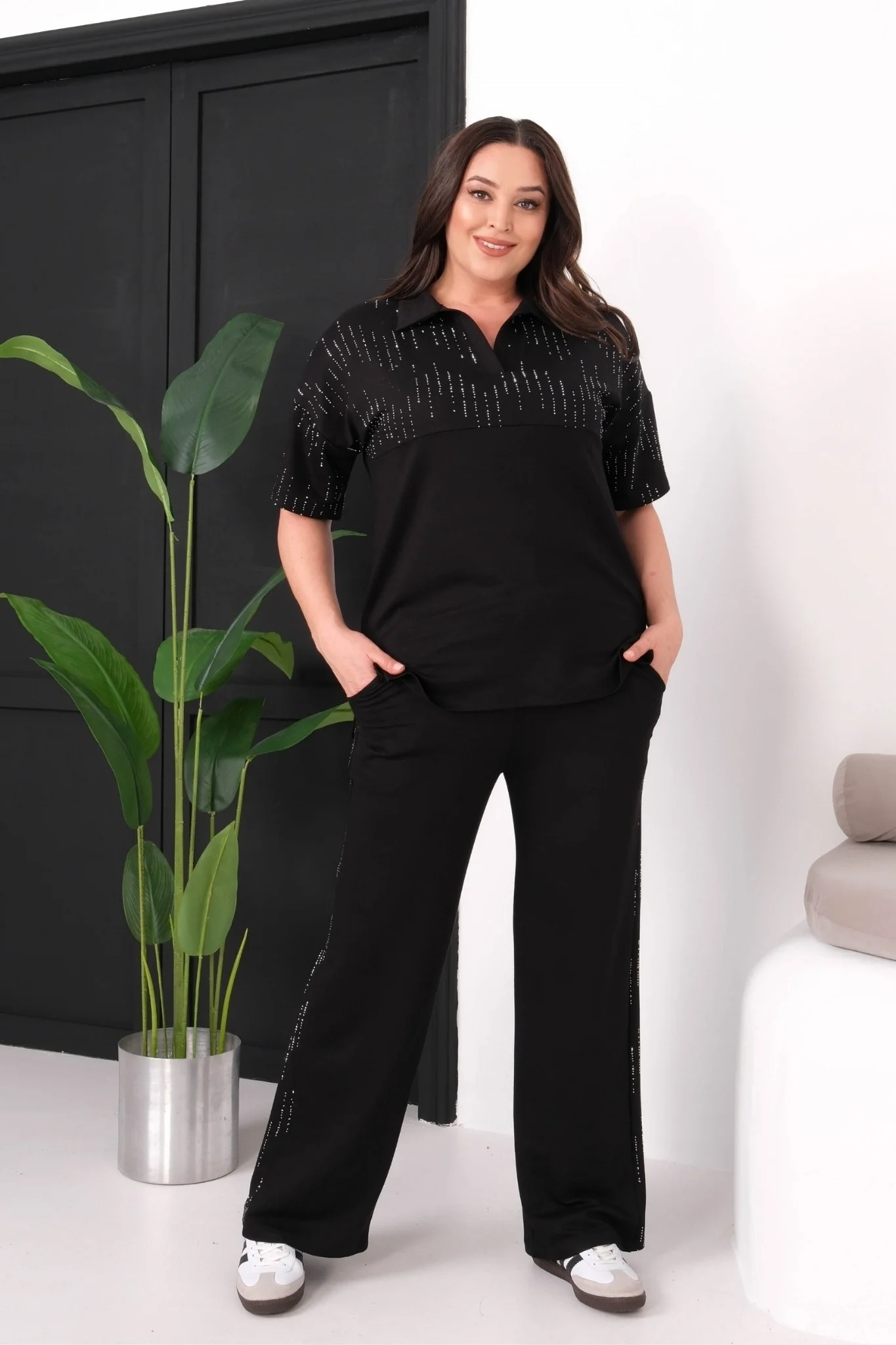 Aytemas Gömlek Yakalı Taş Bakılı Takım, şıklığı ve konforu bir arada sunar.