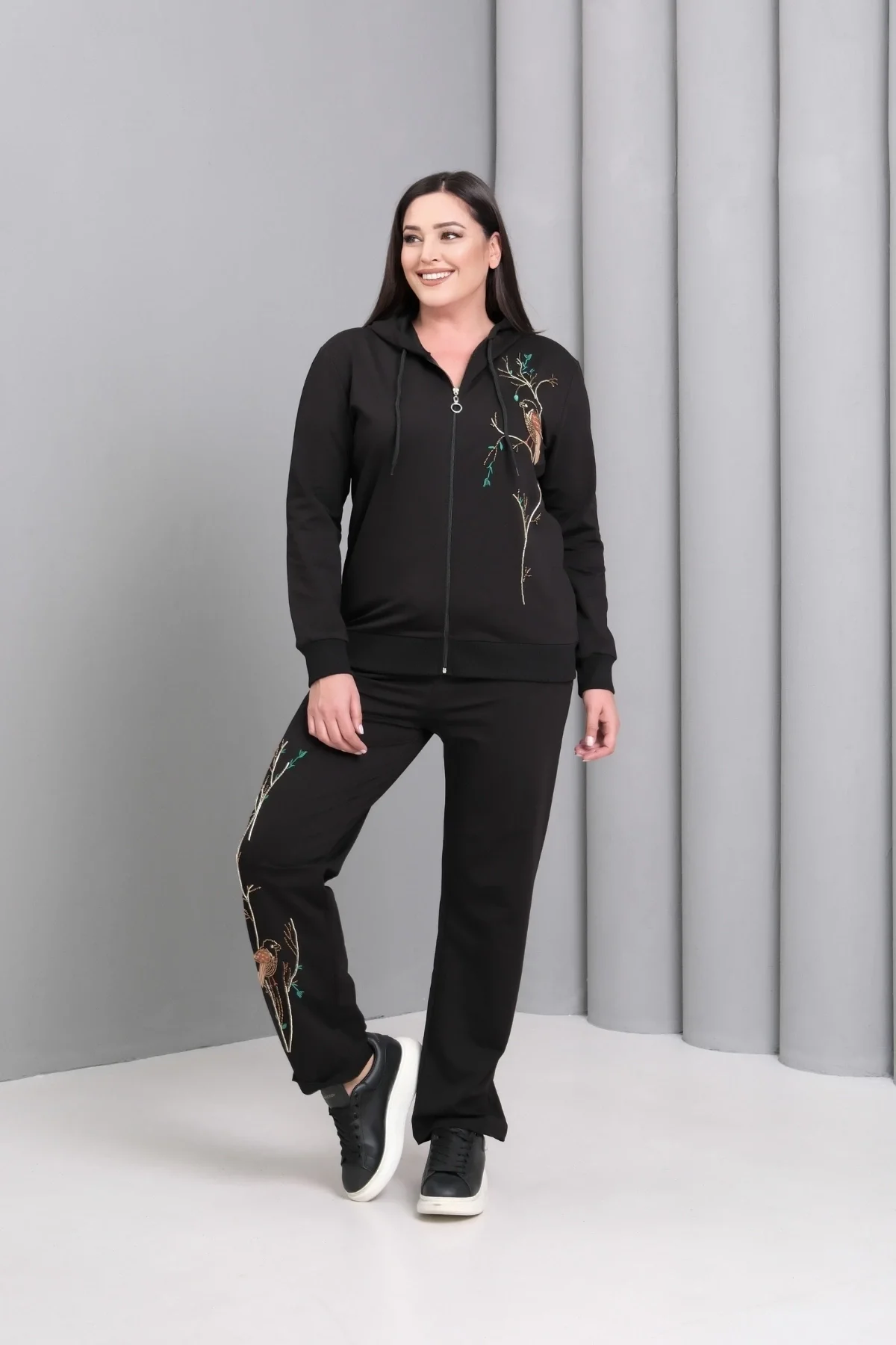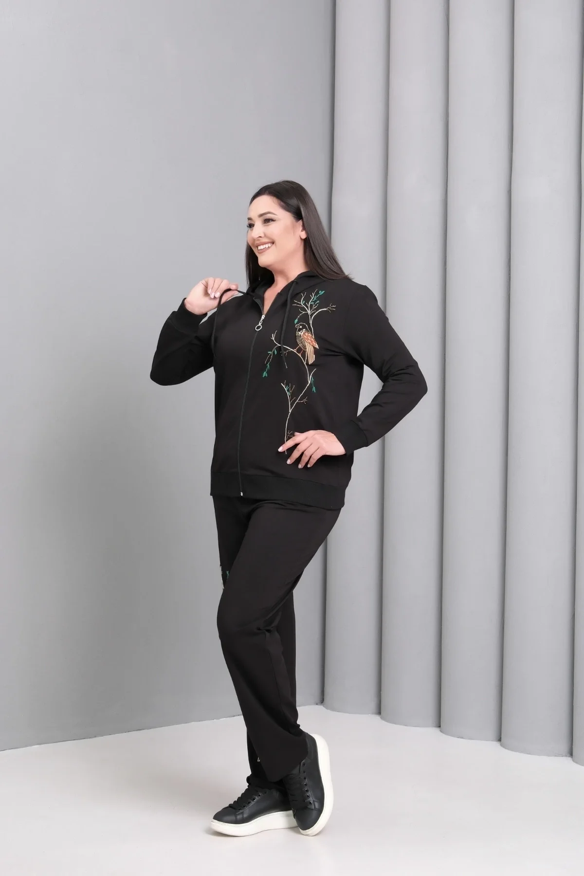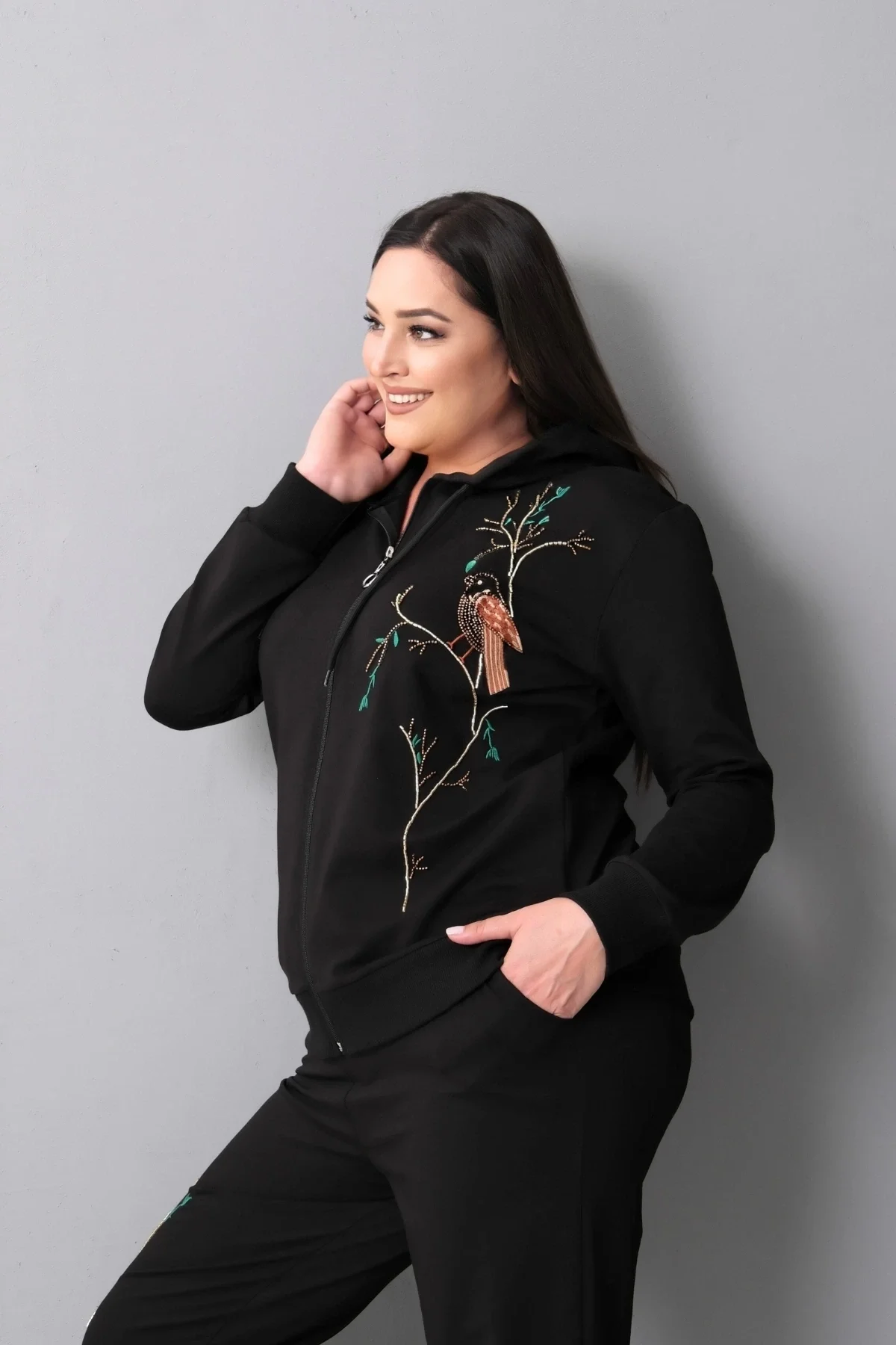 • Kapüşonlu Fermuarlı Boncuk Nakışlı Takım