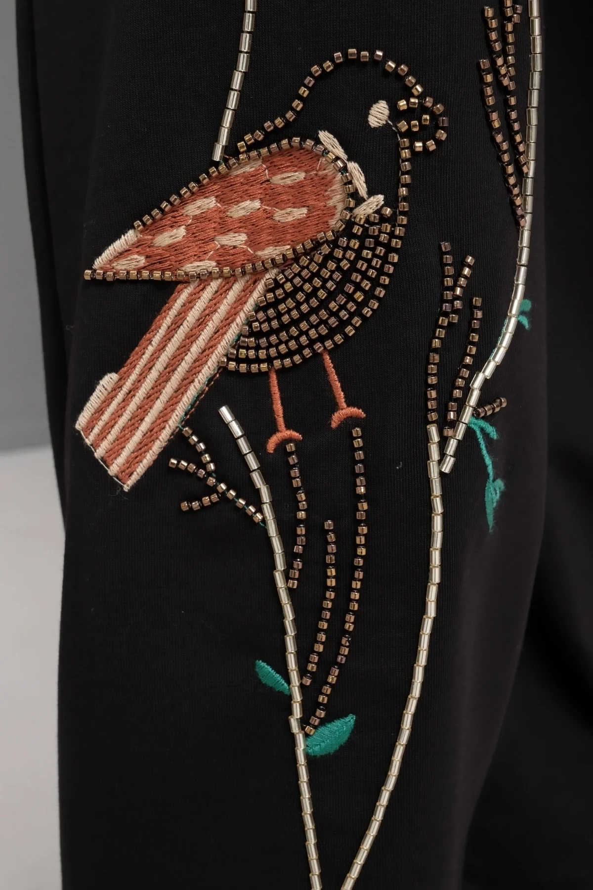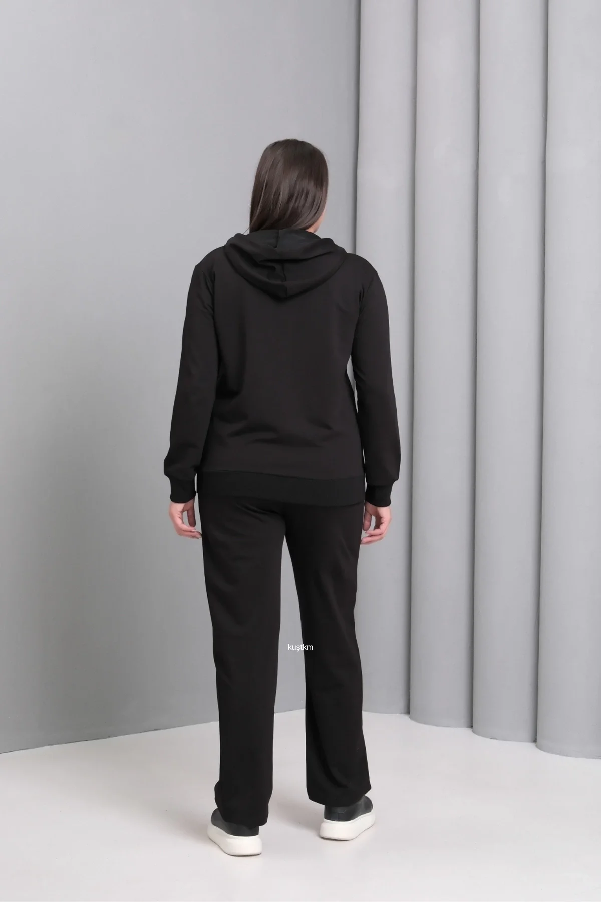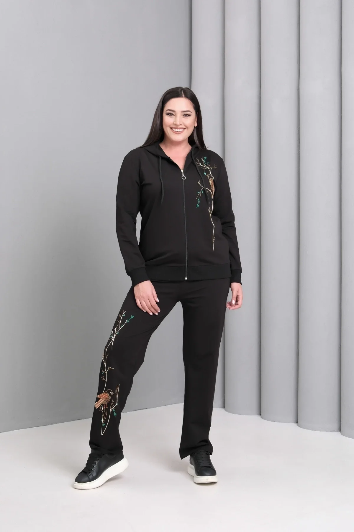 • Kapüşonlu Fermuarlı Boncuk Nakışlı Takım