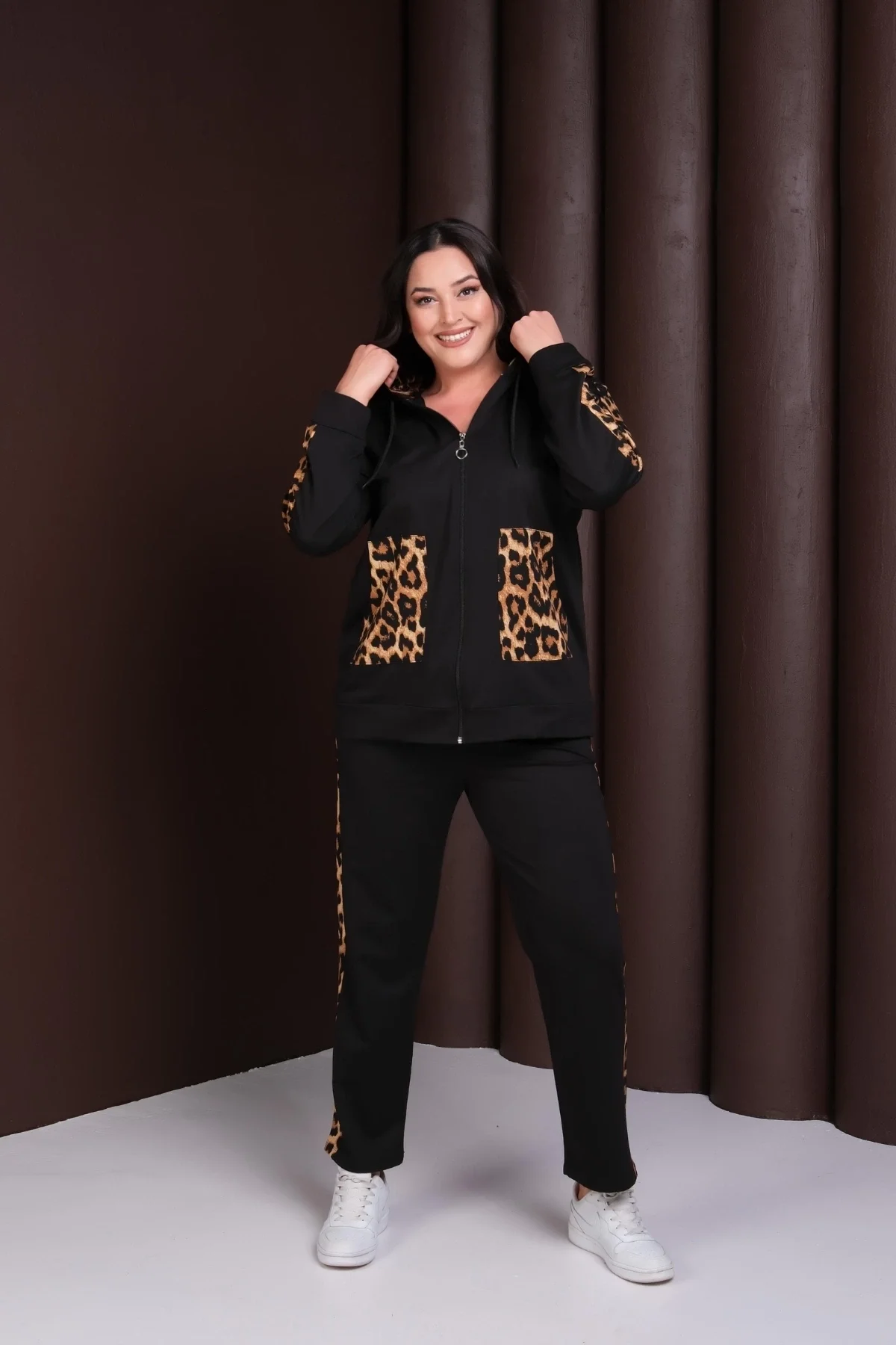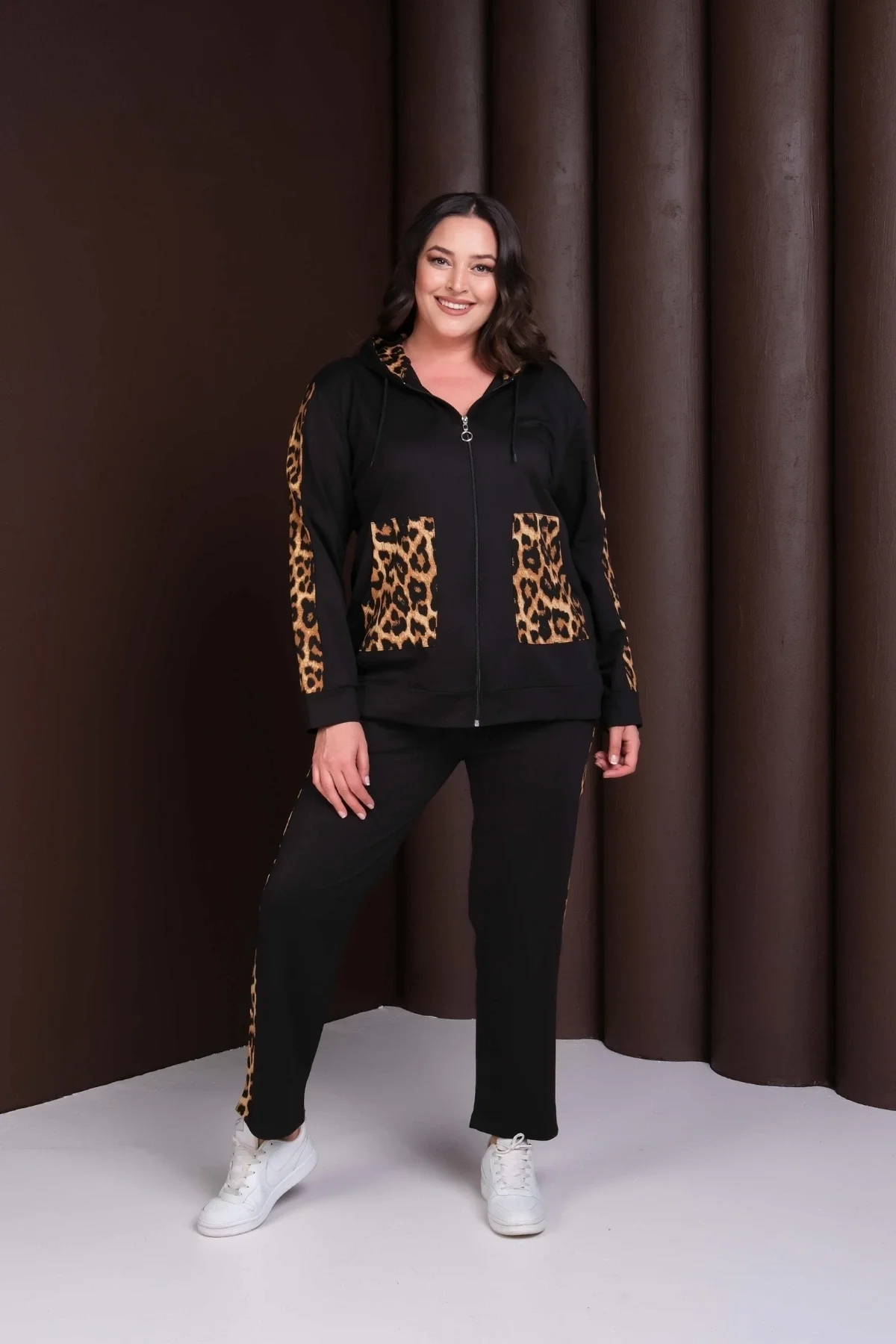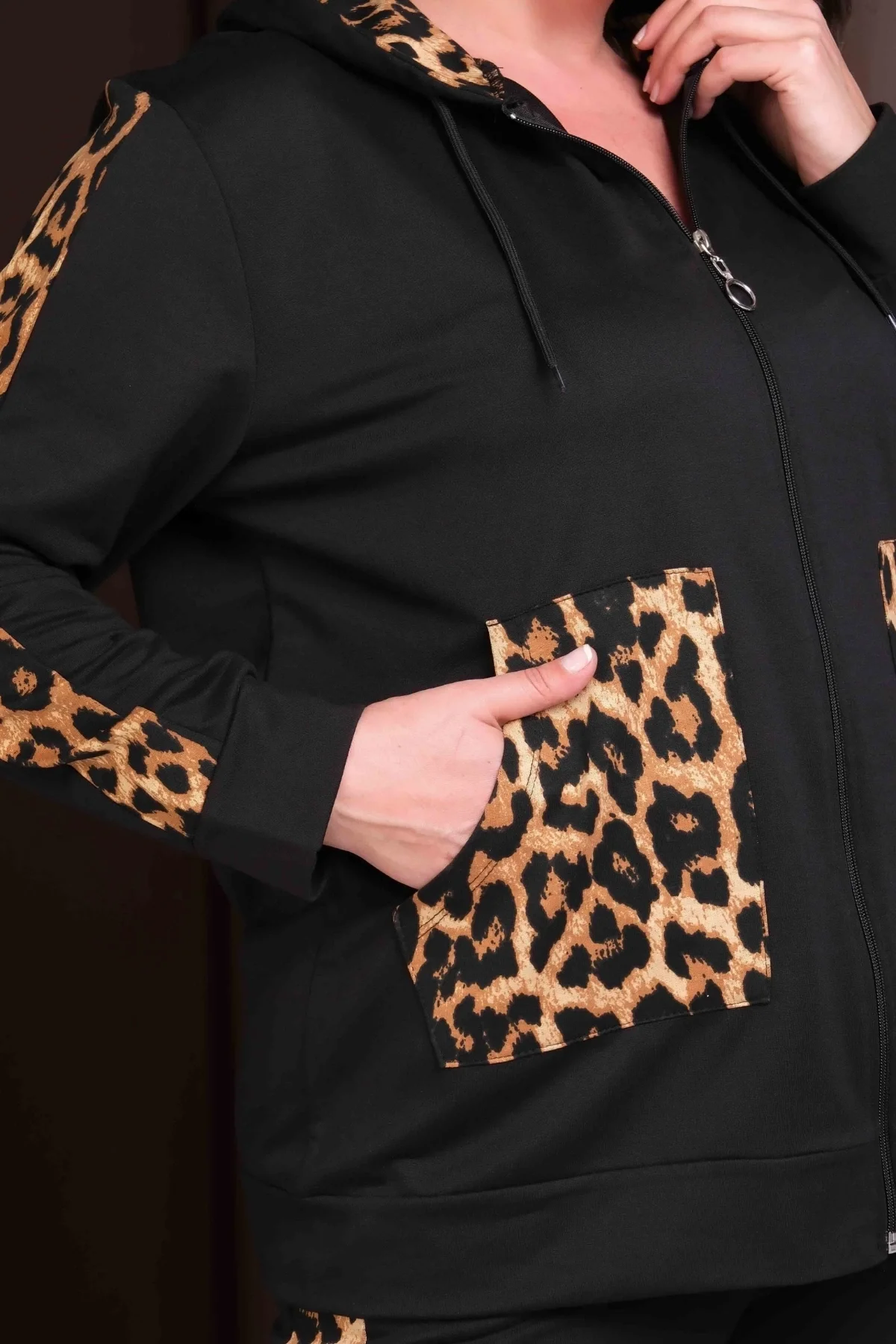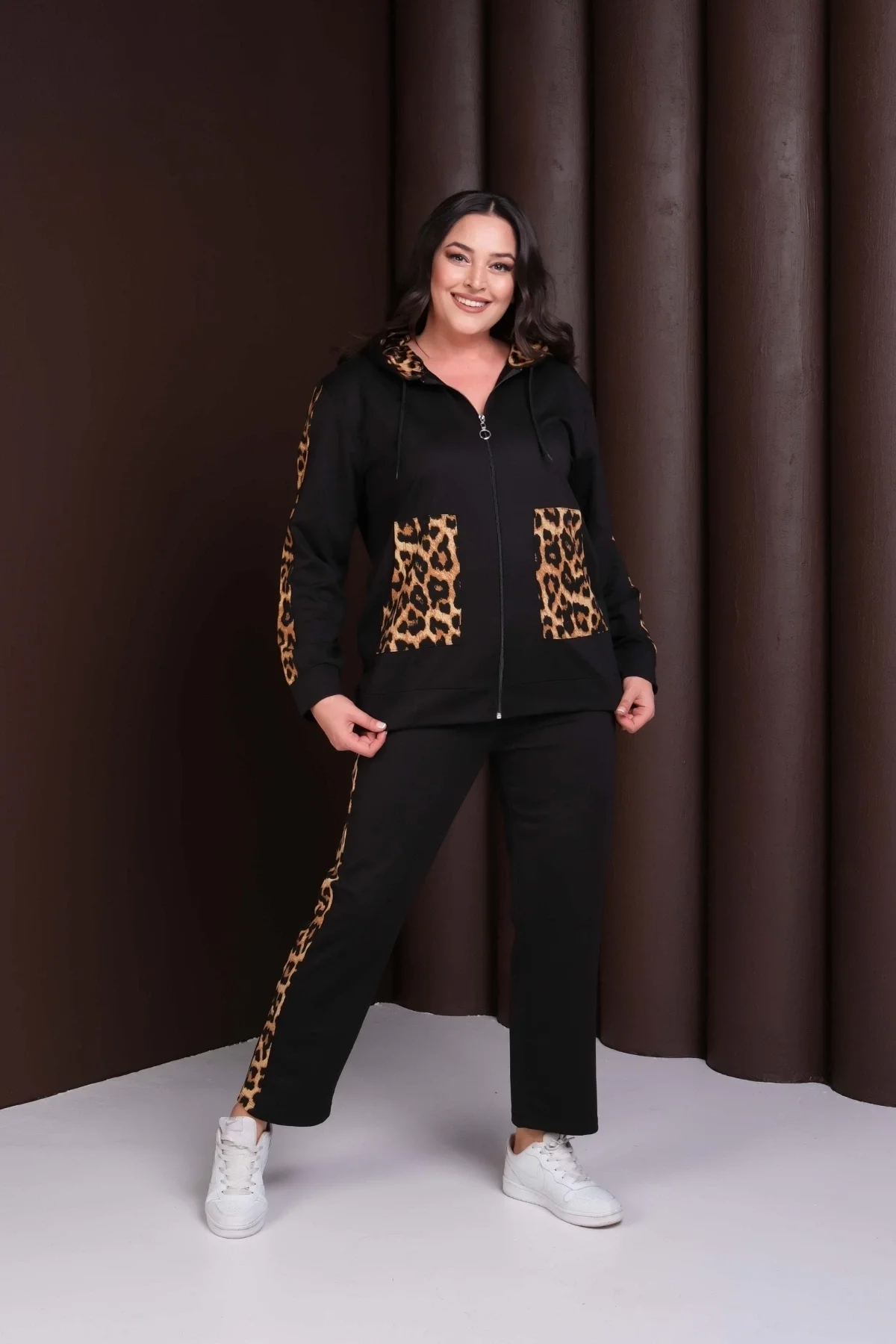 Kapüşonlu Leopar Desenli Alt-Üst Takım