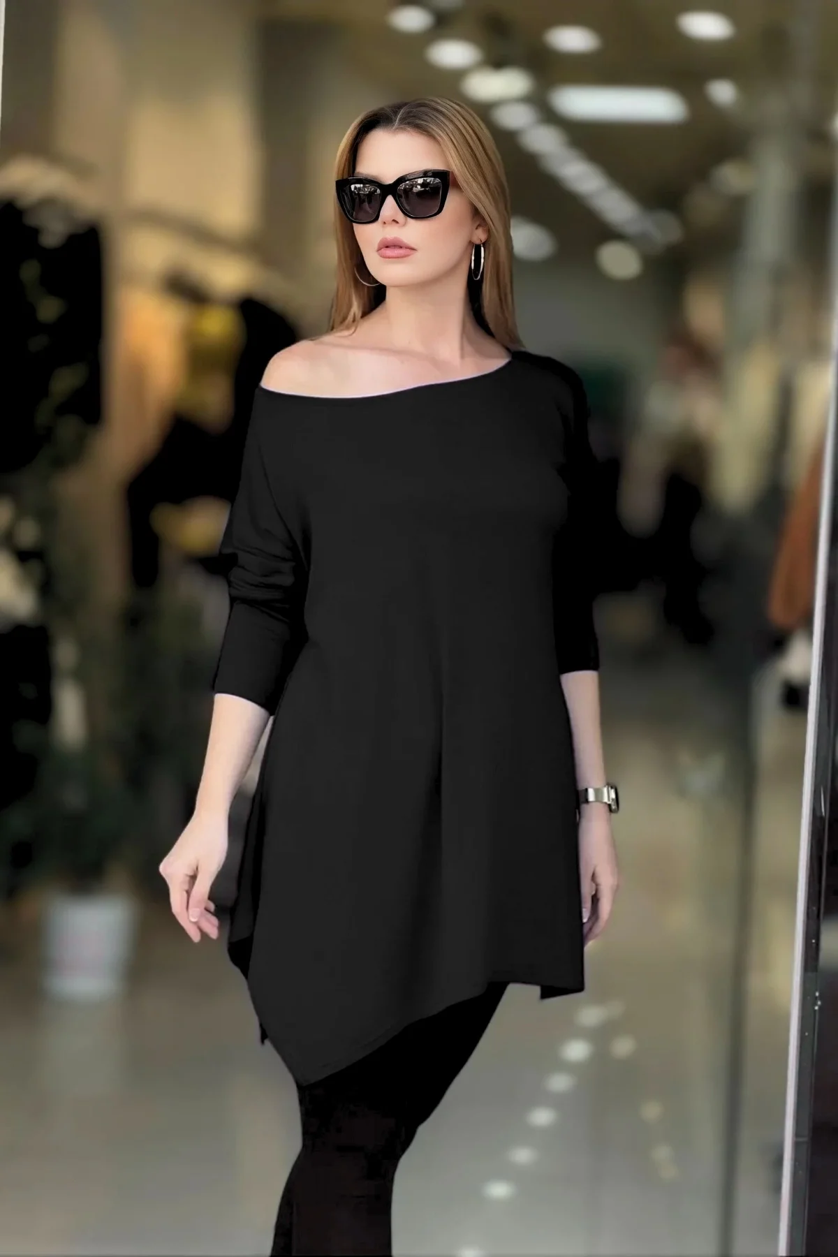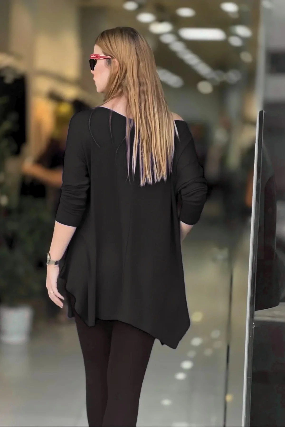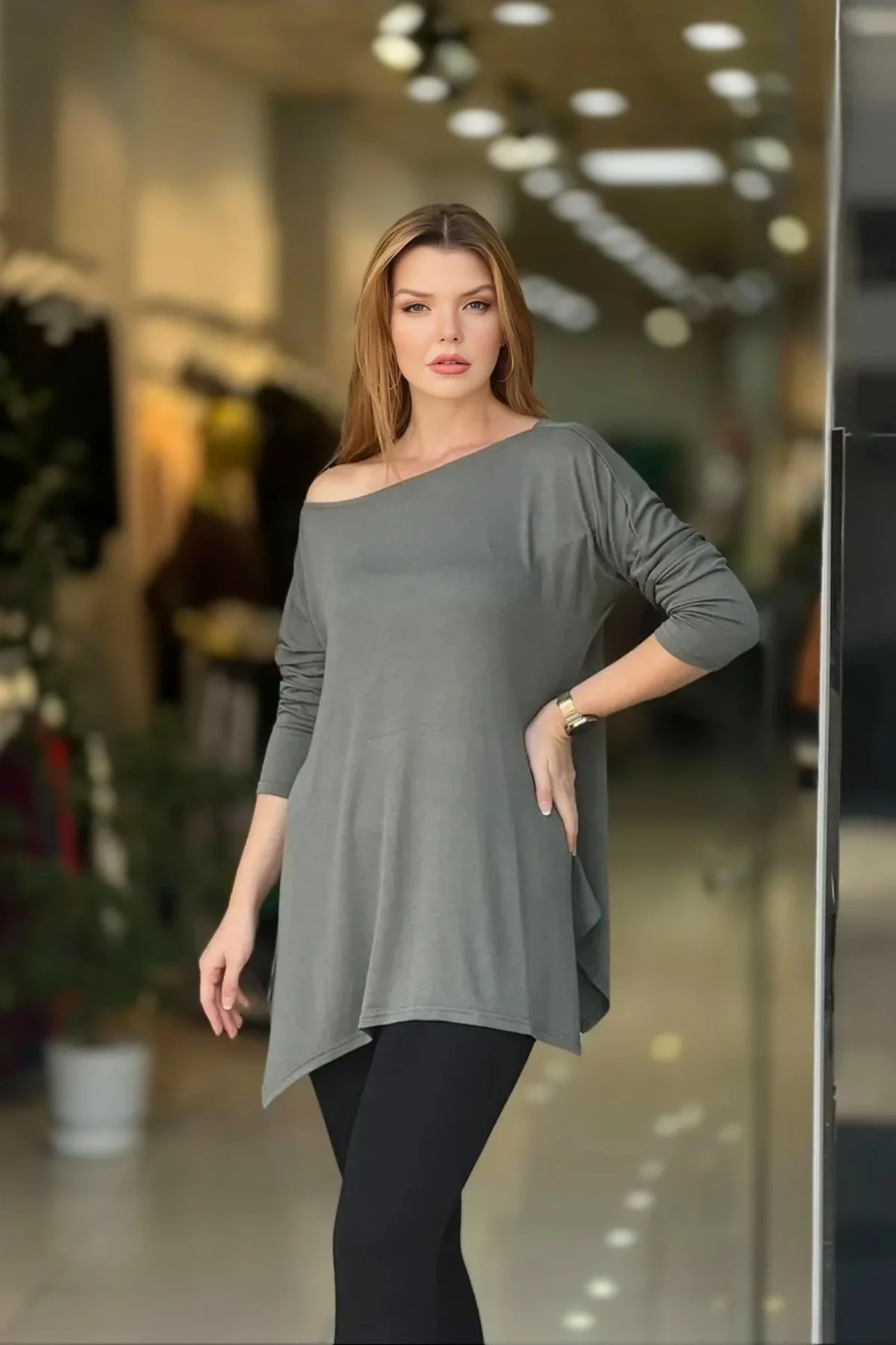 Büyük beden bluz arayanların favorisi olan Aytemas Kayık Yaka Asimetrik Bluz, şıklığı ve rahatlığı bir arada sunuyor.