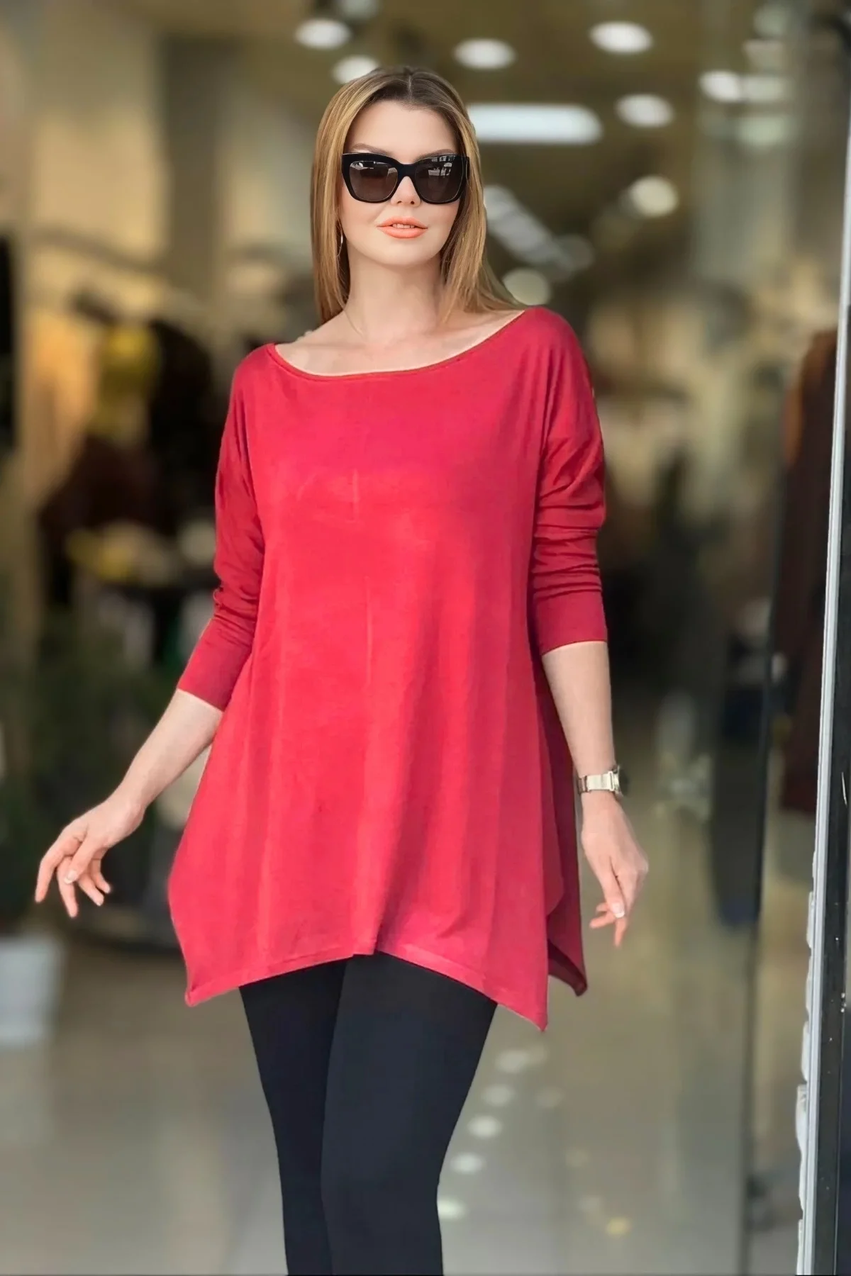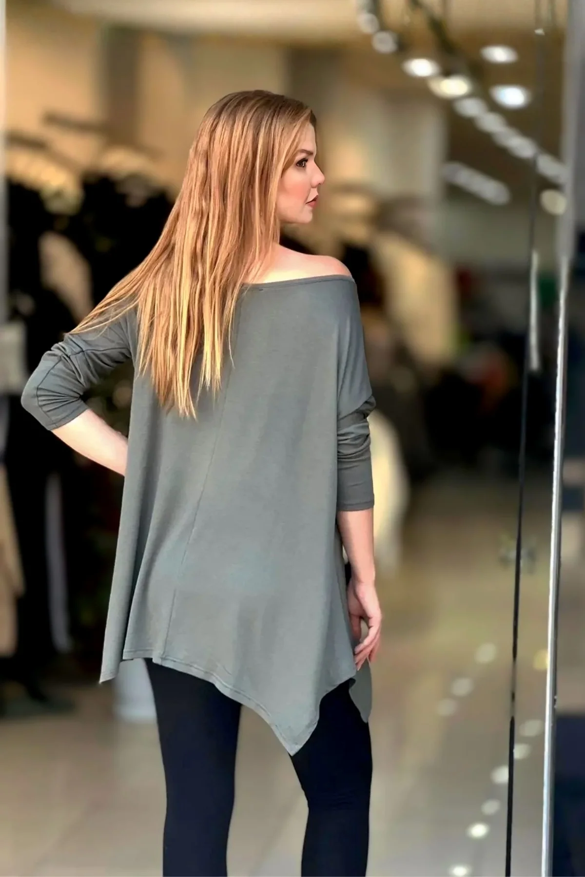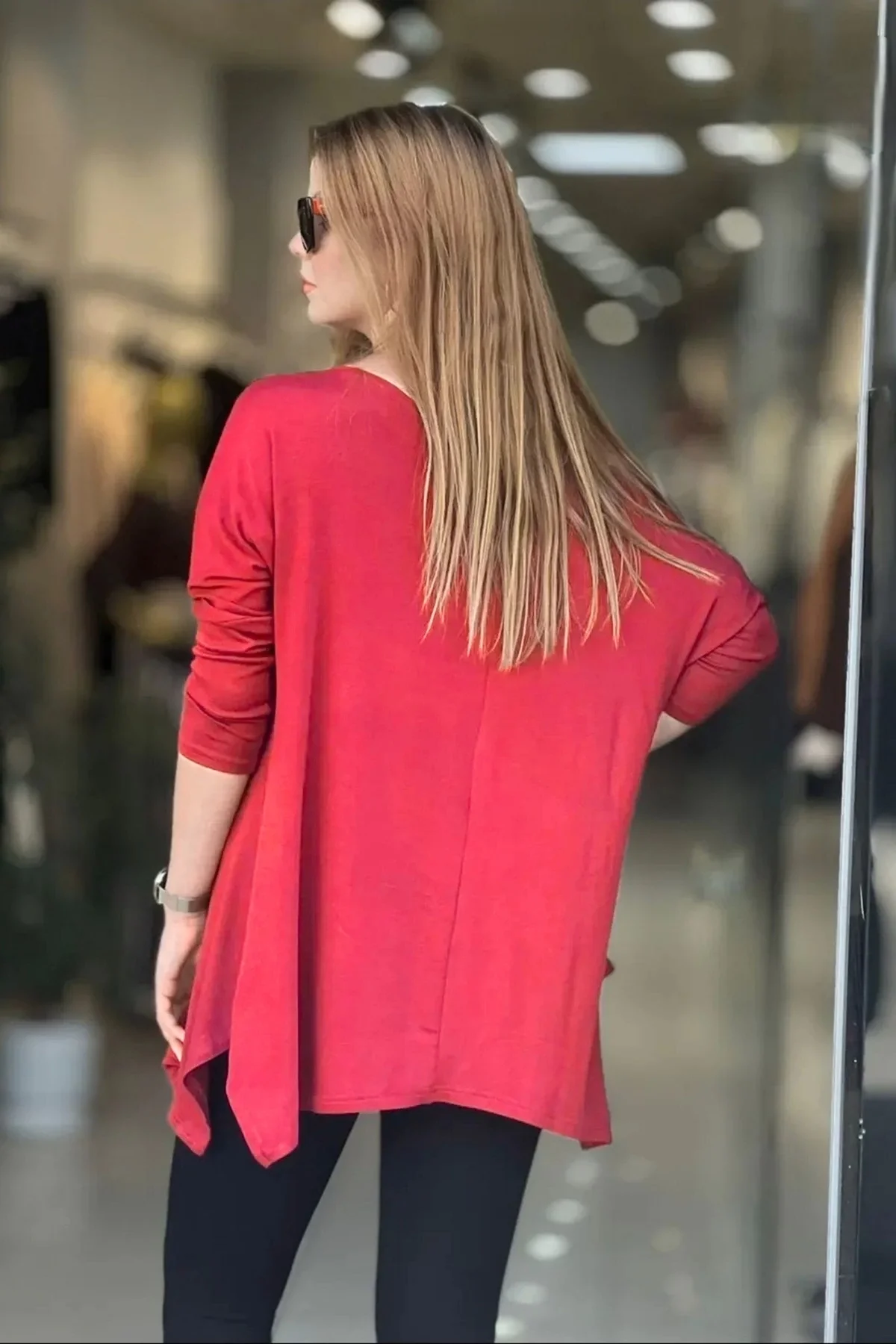 Büyük beden bluz arayanların favorisi olan Aytemas Kayık Yaka Asimetrik Bluz, şıklığı ve rahatlığı bir arada sunuyor.