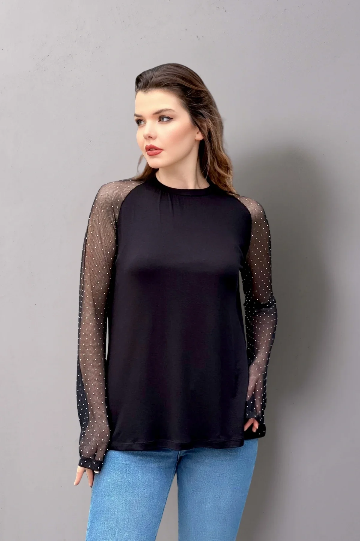 Şıklığı ve konforu bir arada arayanların tercihi olan Kolları Tül Taşlı Bluz, gardırobunuzun vazgeçilmez parçalarından biri olmaya aday!