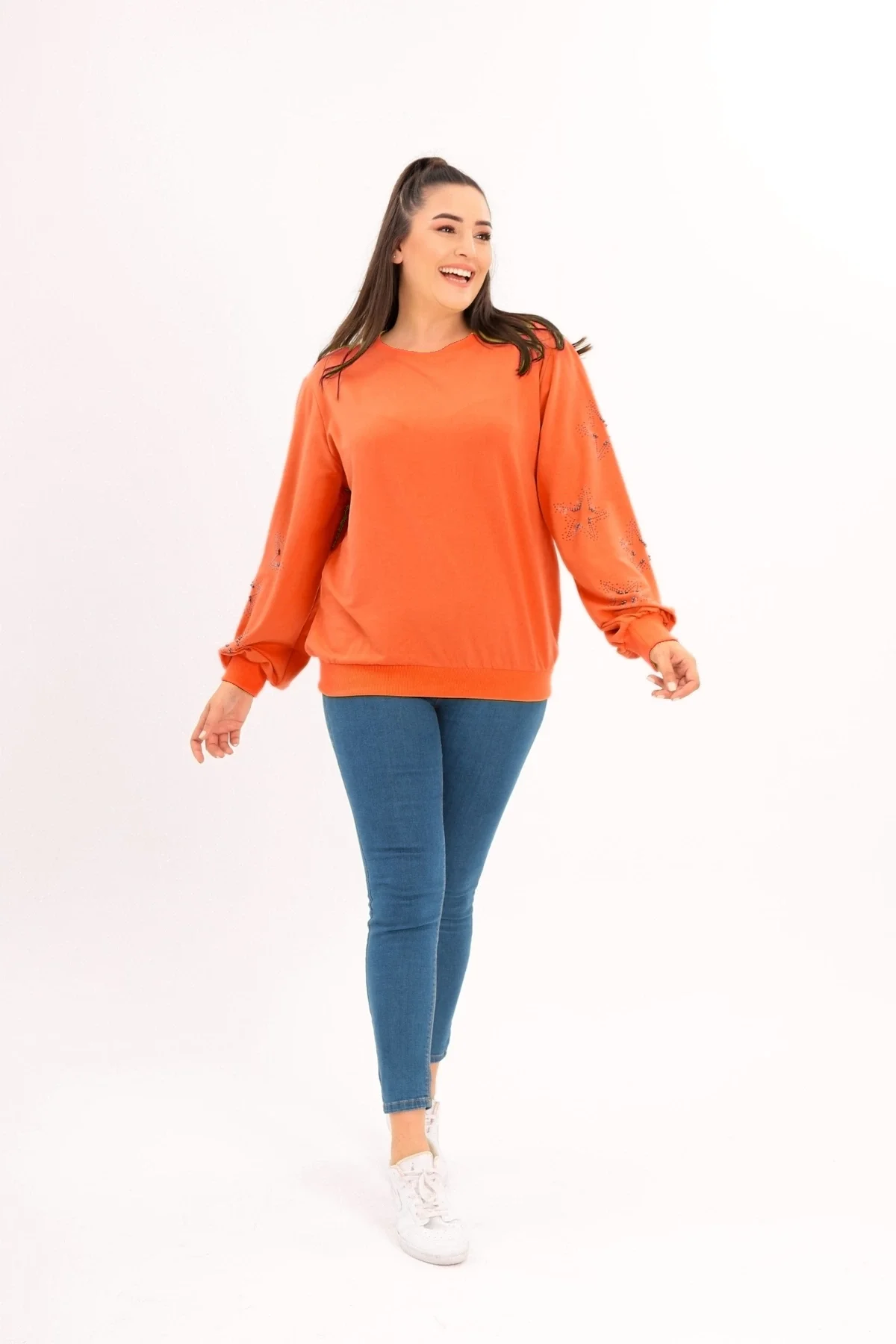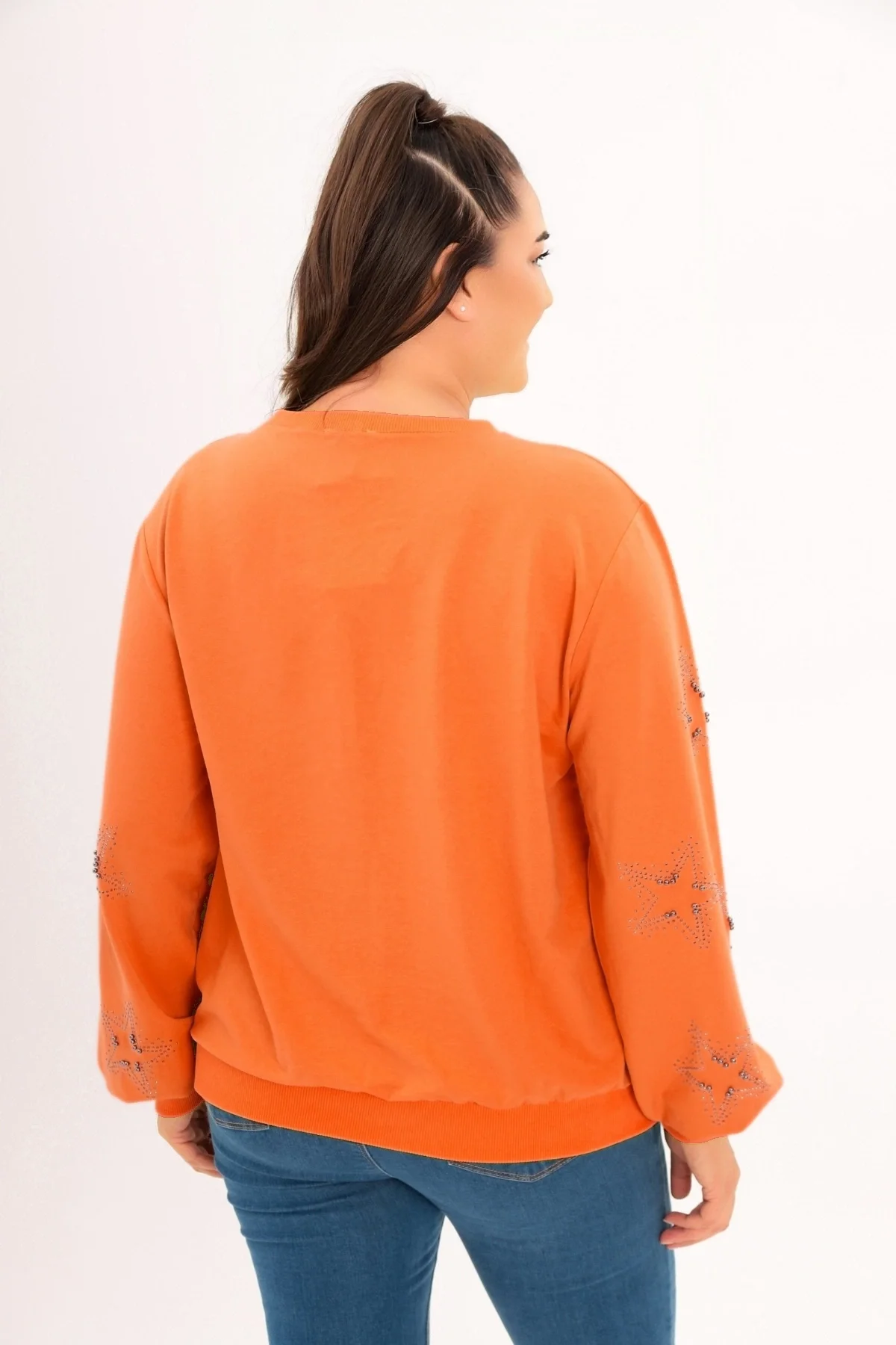 Modaya uygun tasarımı ve detaylarıyla fark yaratan Kolları Yıldız Taş Baskılı Sweatshirt, gardırobunuzun vazgeçilmez parçalarından biri olmaya aday!