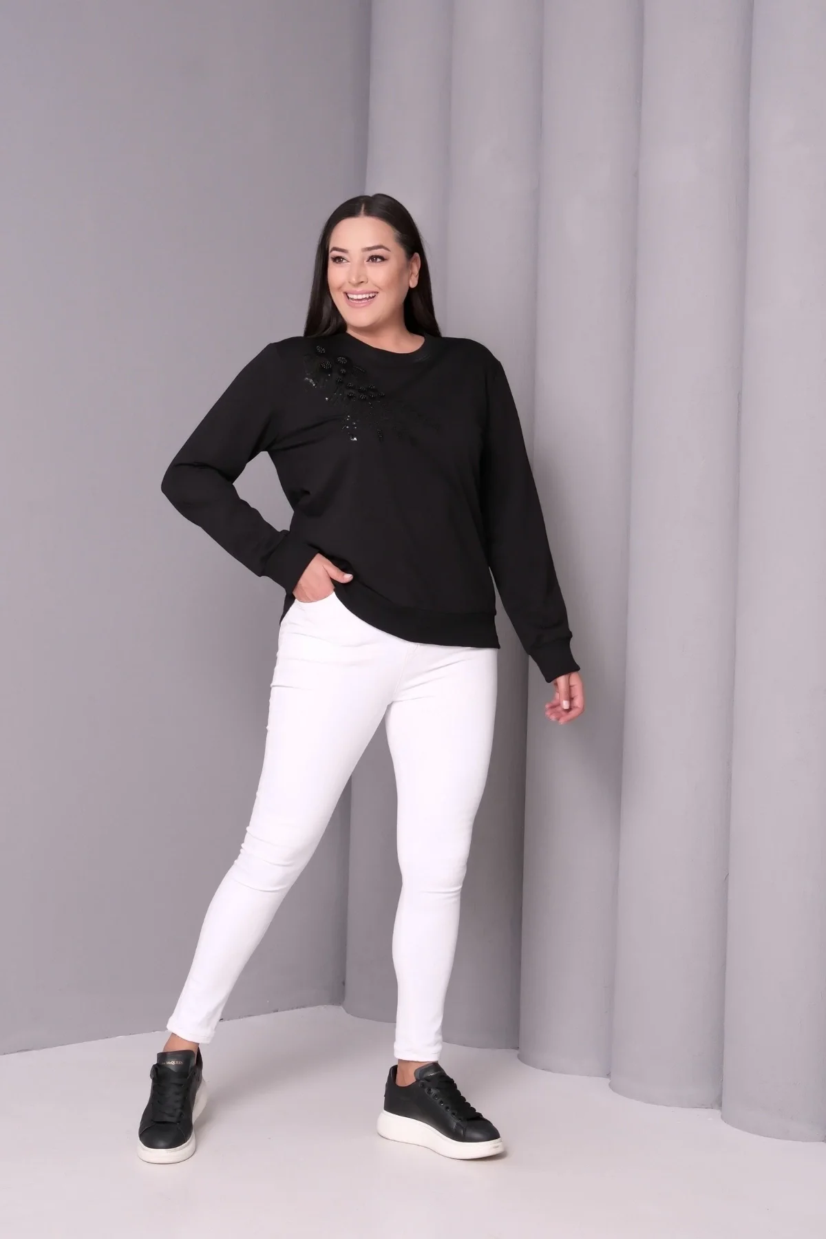 Modaya uygun tasarımı ve detaylarıyla fark yaratan Önü Pul Nakış Sweatshirt, gardırobunuzun vazgeçilmez parçalarından biri olmaya aday!
