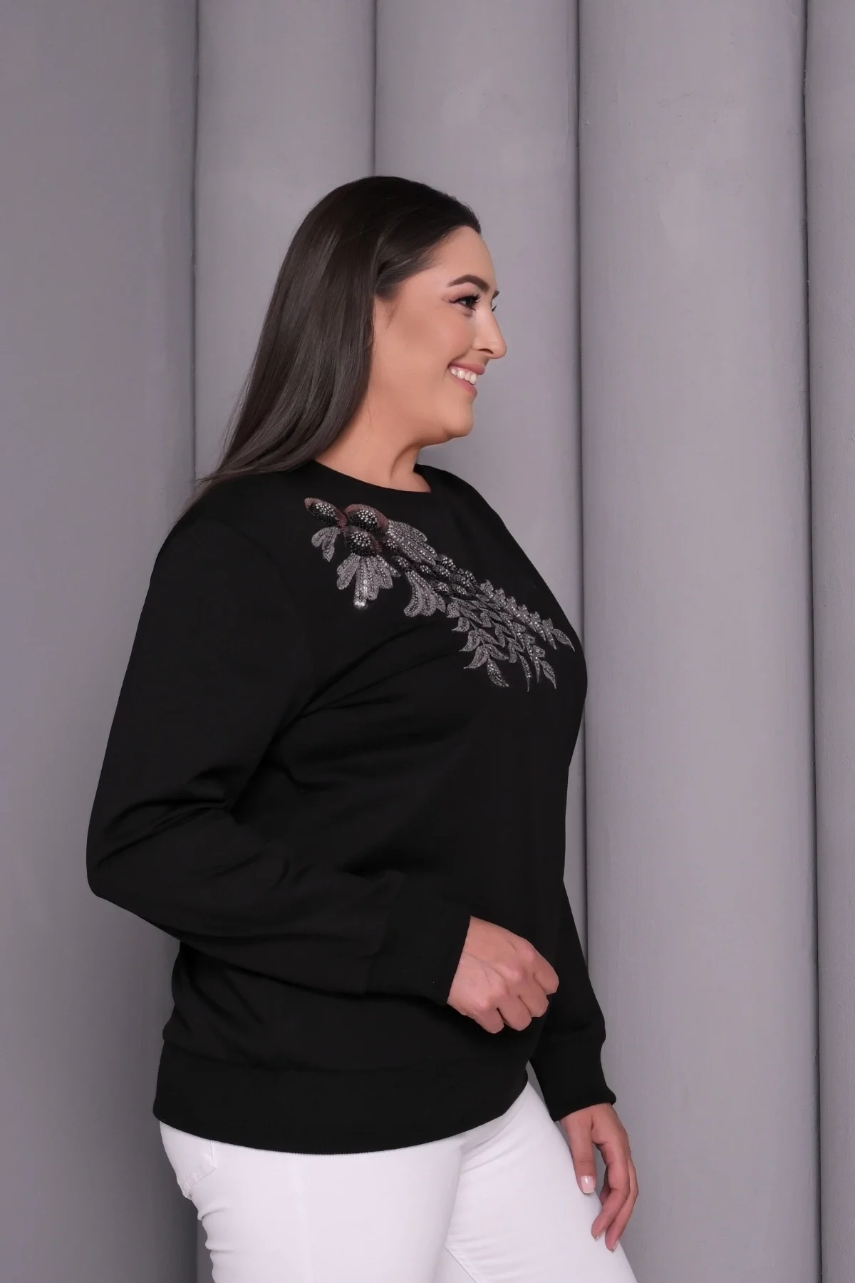 Aytemas Önü Pul Nakış Sweatshirt, şıklığı ve rahatlığı bir araya getiriyor. Büyük beden olarak tasarlanan bu sweatshirt,pul nakış detaylarıyla dikkat çekiyor. Hem günlük kullanıma hem de özel günlerde tercih edebileceğiniz şık bir parça olan bu sweatshirt, konforuyla da vazgeçilmeziniz olacak.