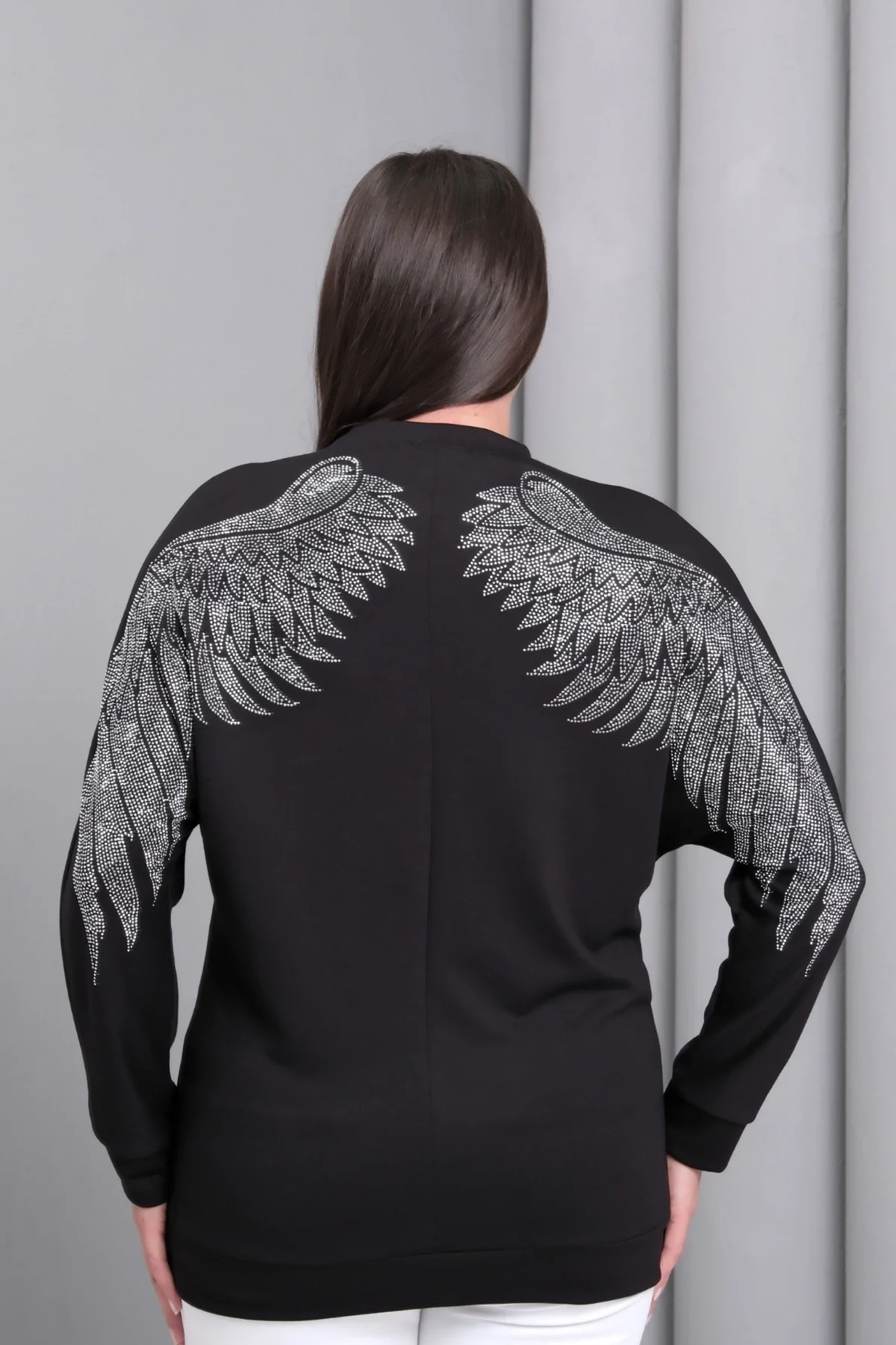• Sırtı Kanat Taş Baskılı Sweatshirt