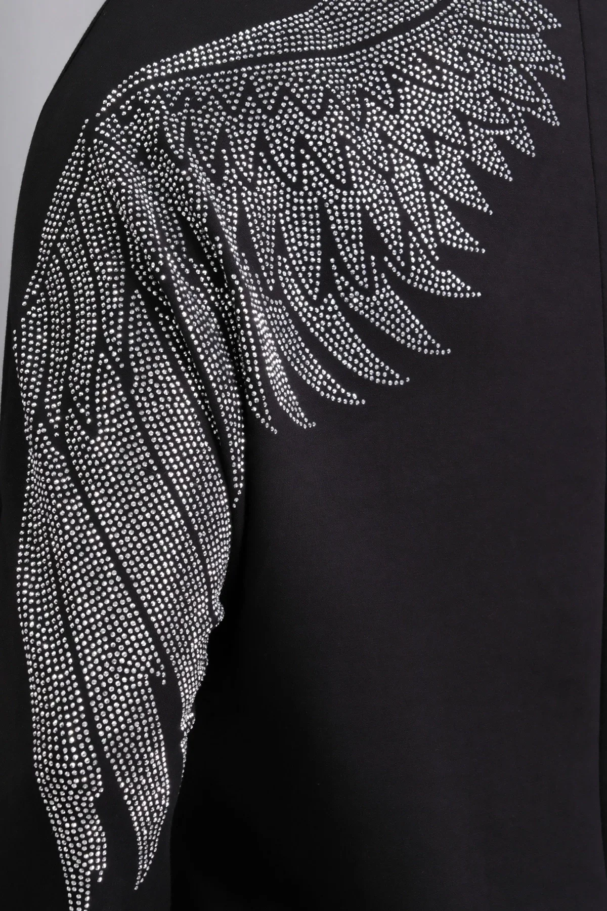 Sırtı Kanat Taş Baskılı Sweatshirt