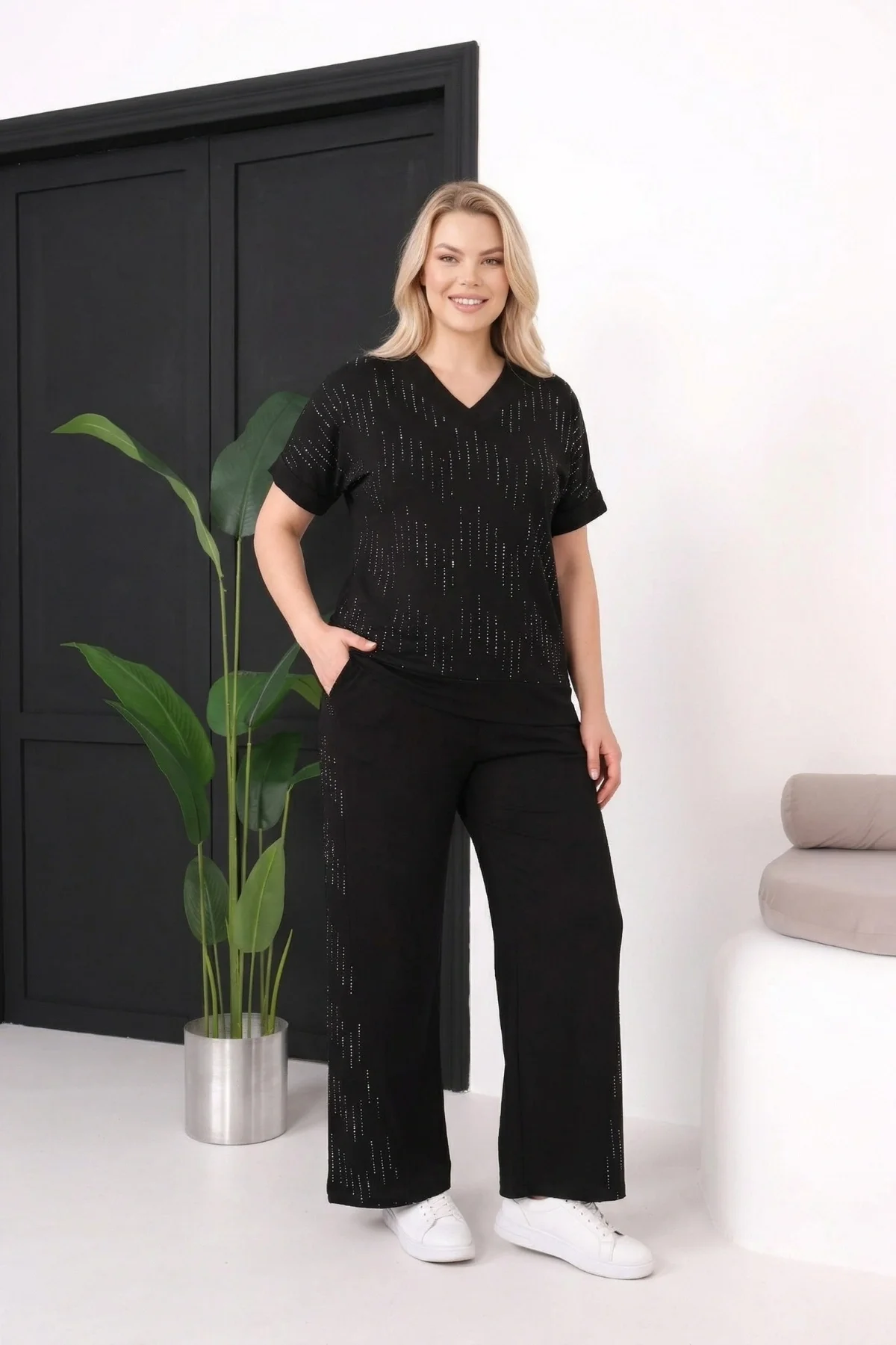 Büyük Beden Alt-Üst Takım kategorisinde bulunan bu ürün, geniş beden aralığında rahat bir kullanım sunar.