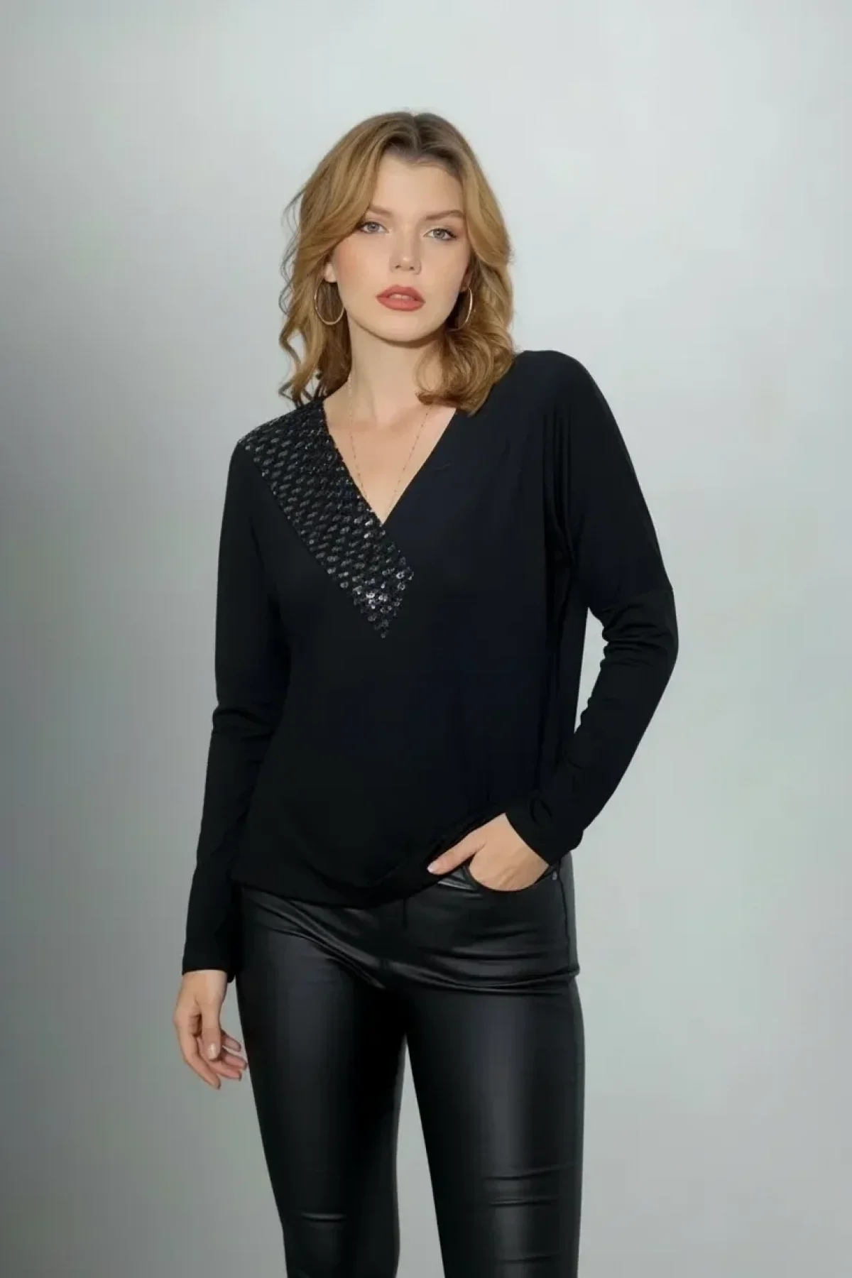 • Yakası File Sim Detaylı Bluz