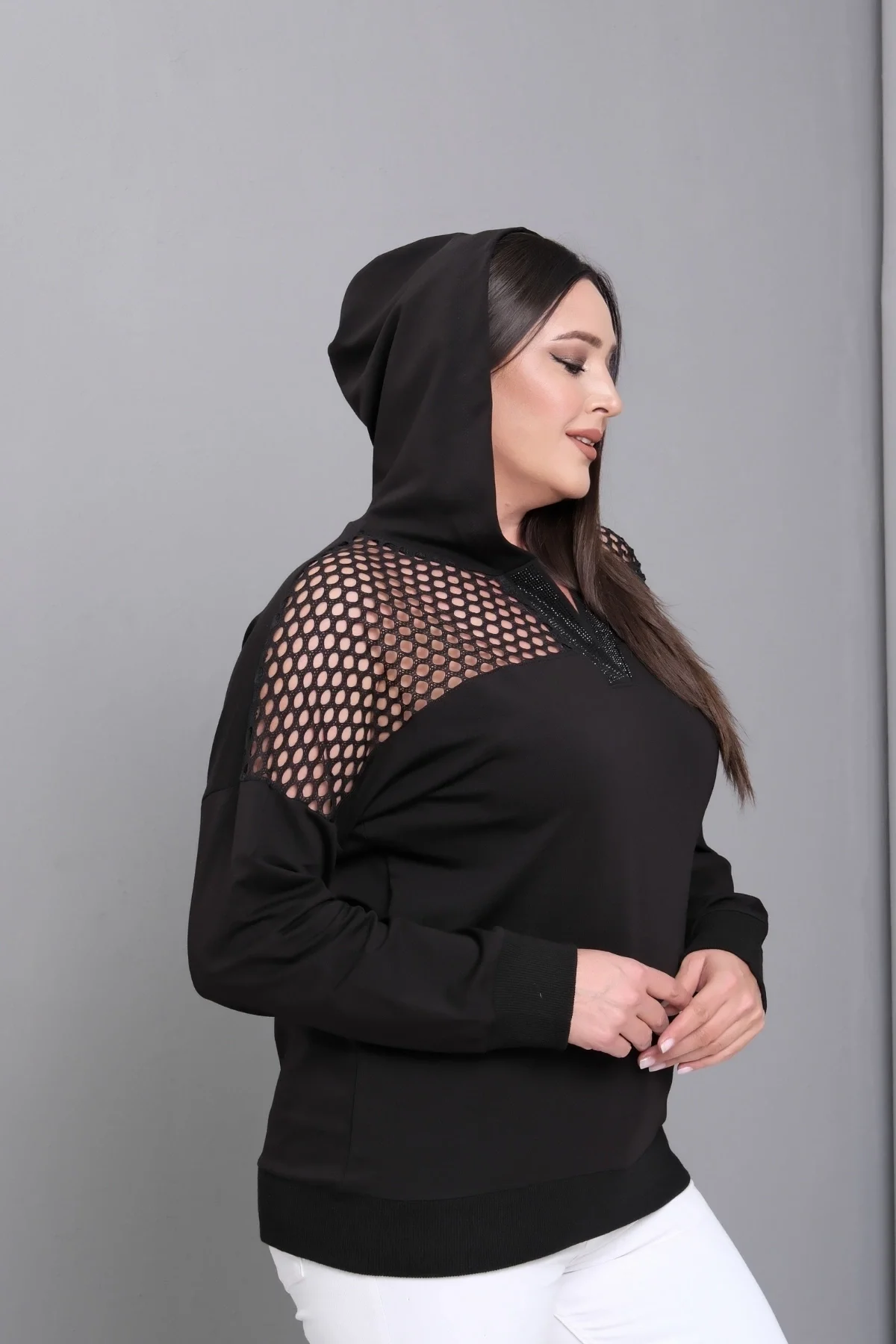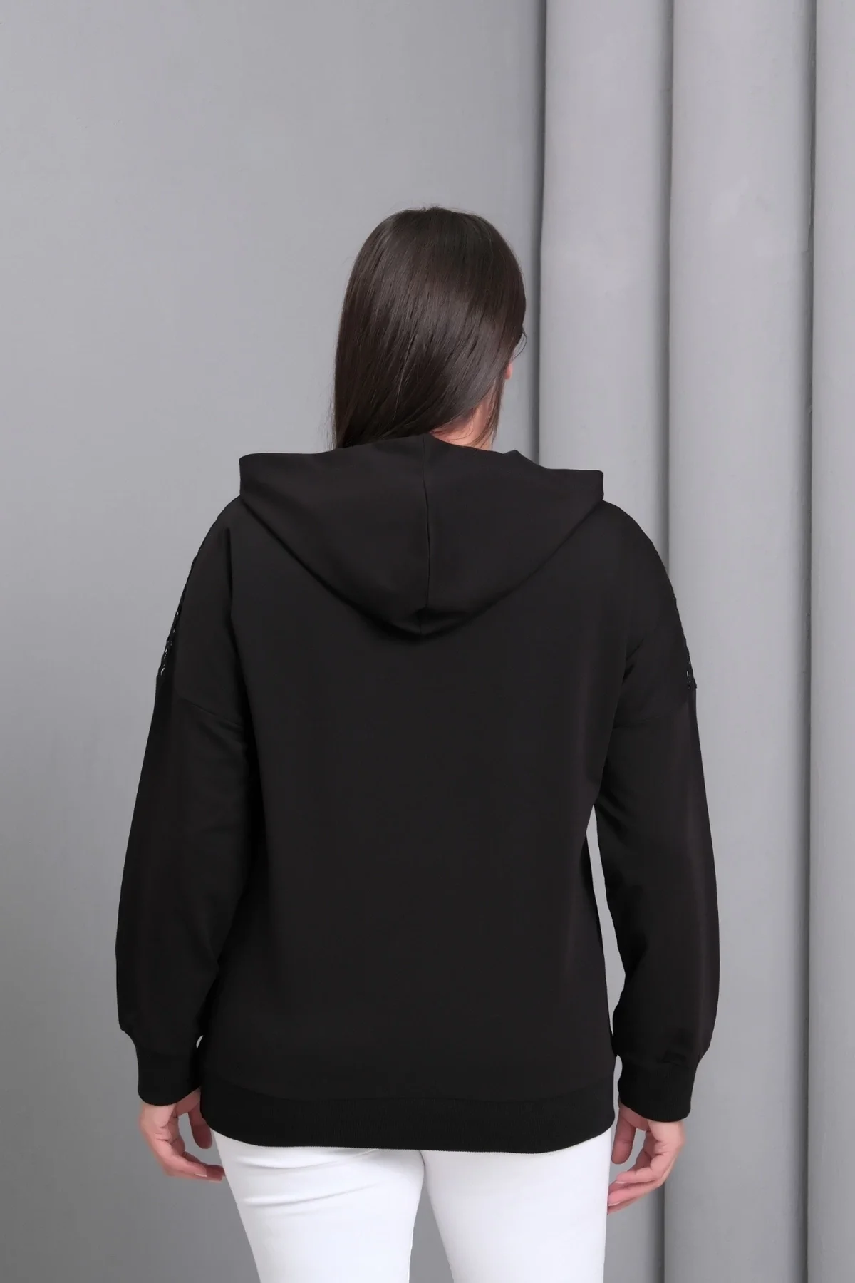 Yakası Taşlı File Detaylı Sweatshirt